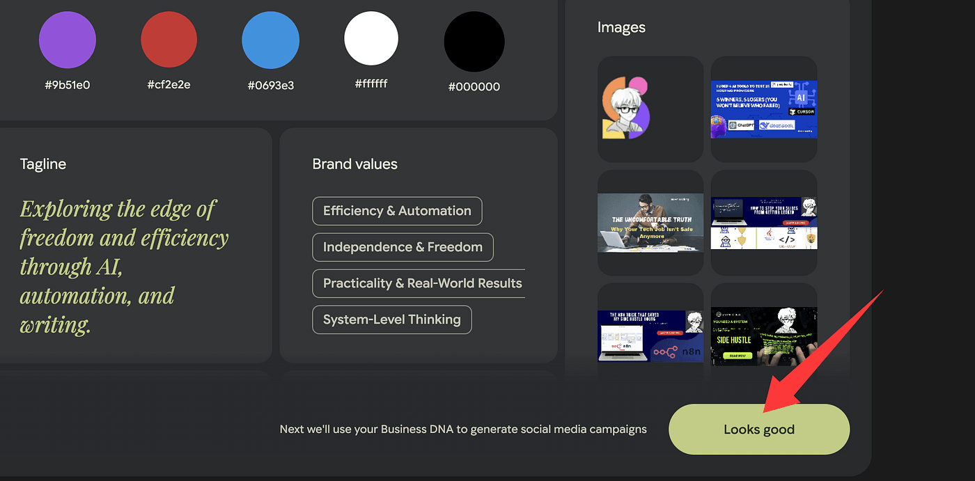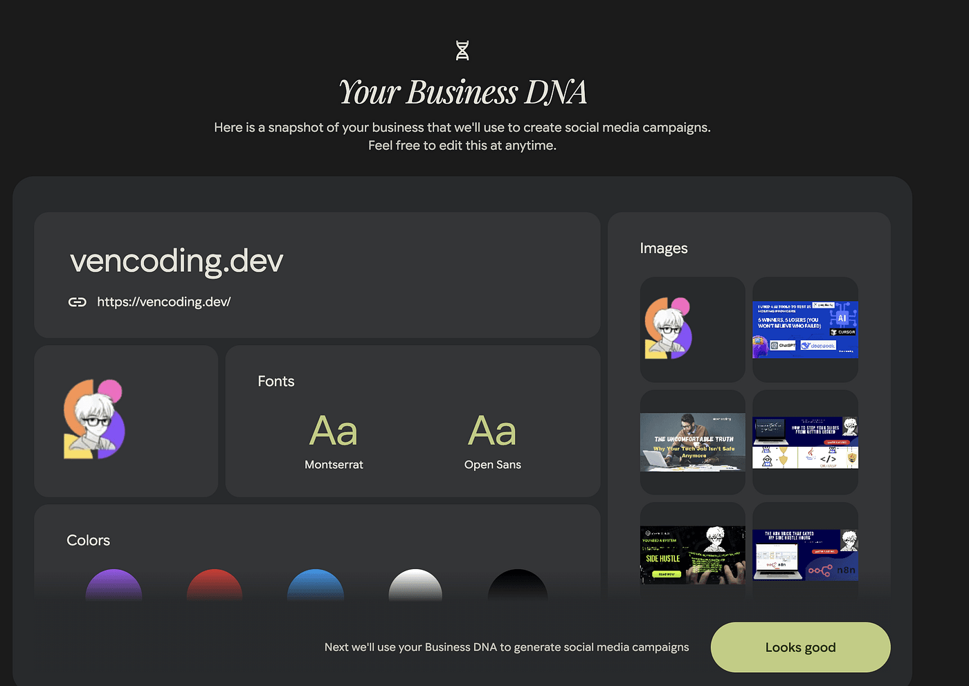 Once the analysis finished, I could see my logo, my cover images, and even some of my post visuals displayed on the screen.