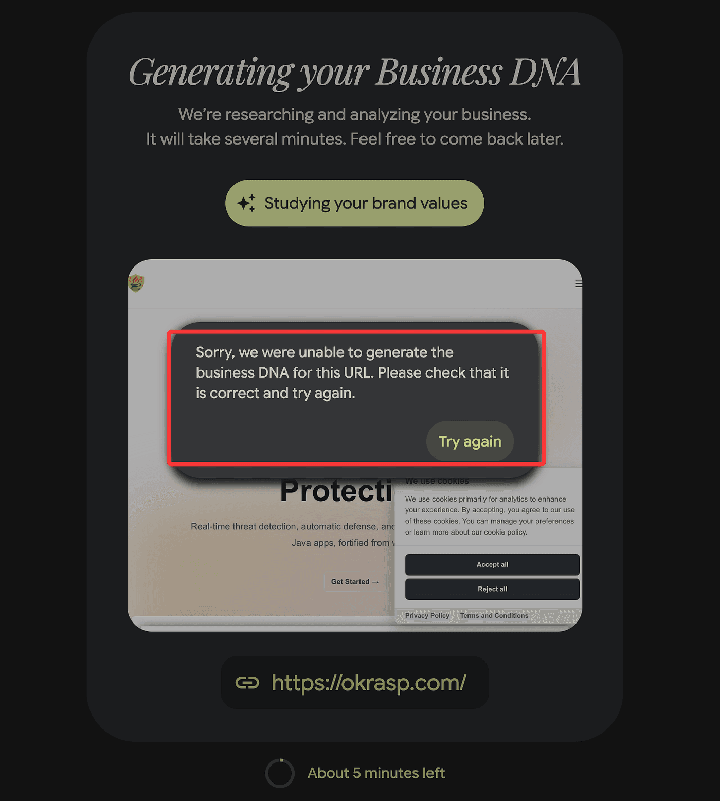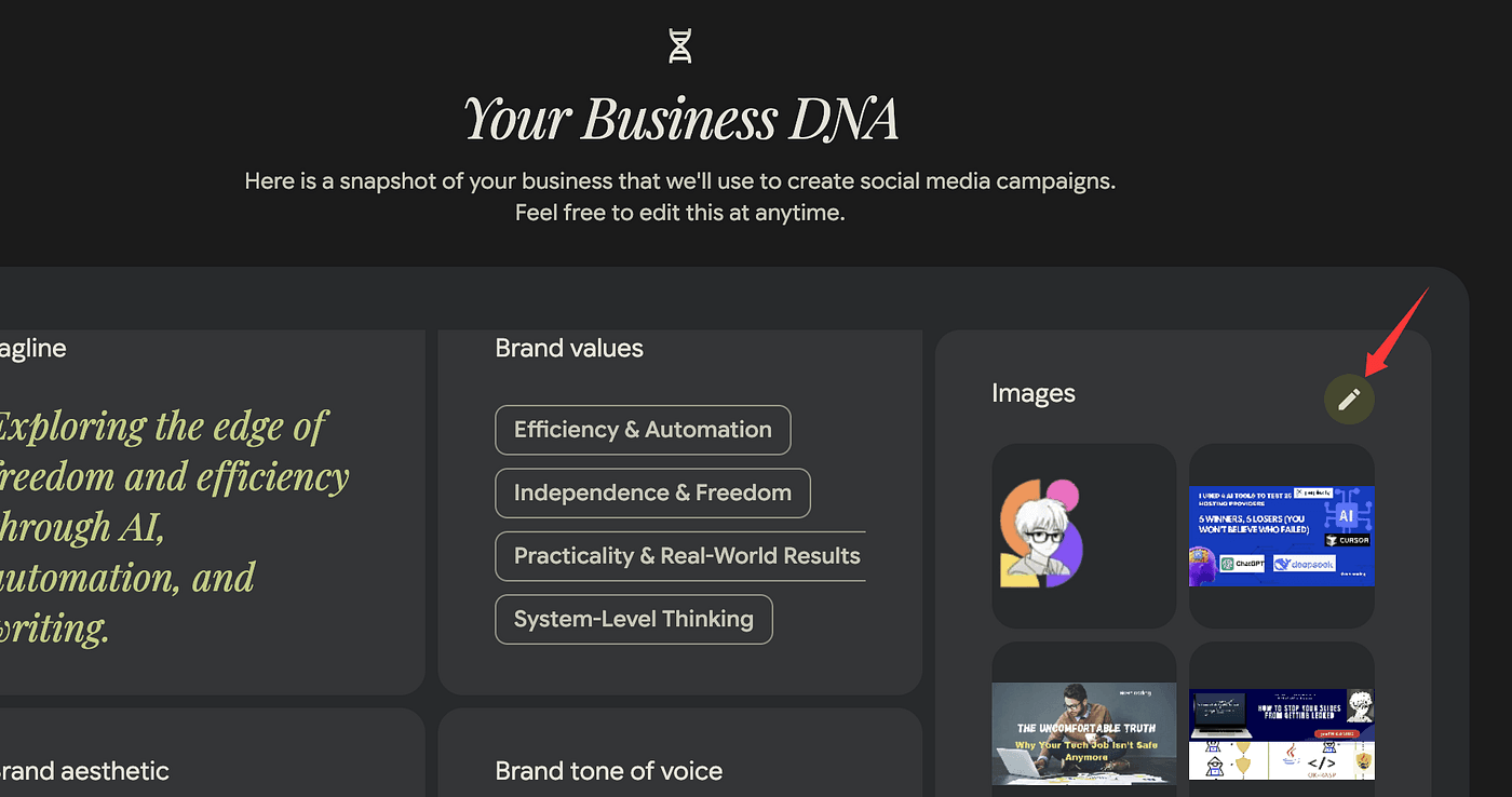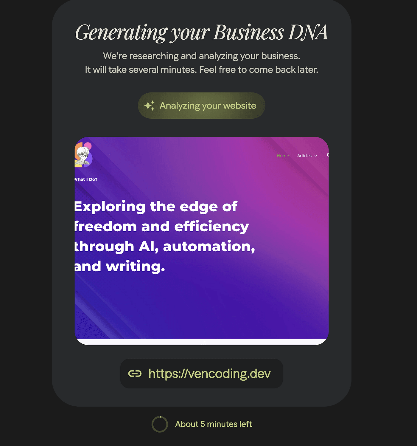 Within just a few minutes, Pomelli claimed it could scan my website, understand my brand colors, fonts, and tone — even generate something called a Business DNA — and then automatically create marketing campaigns for me.