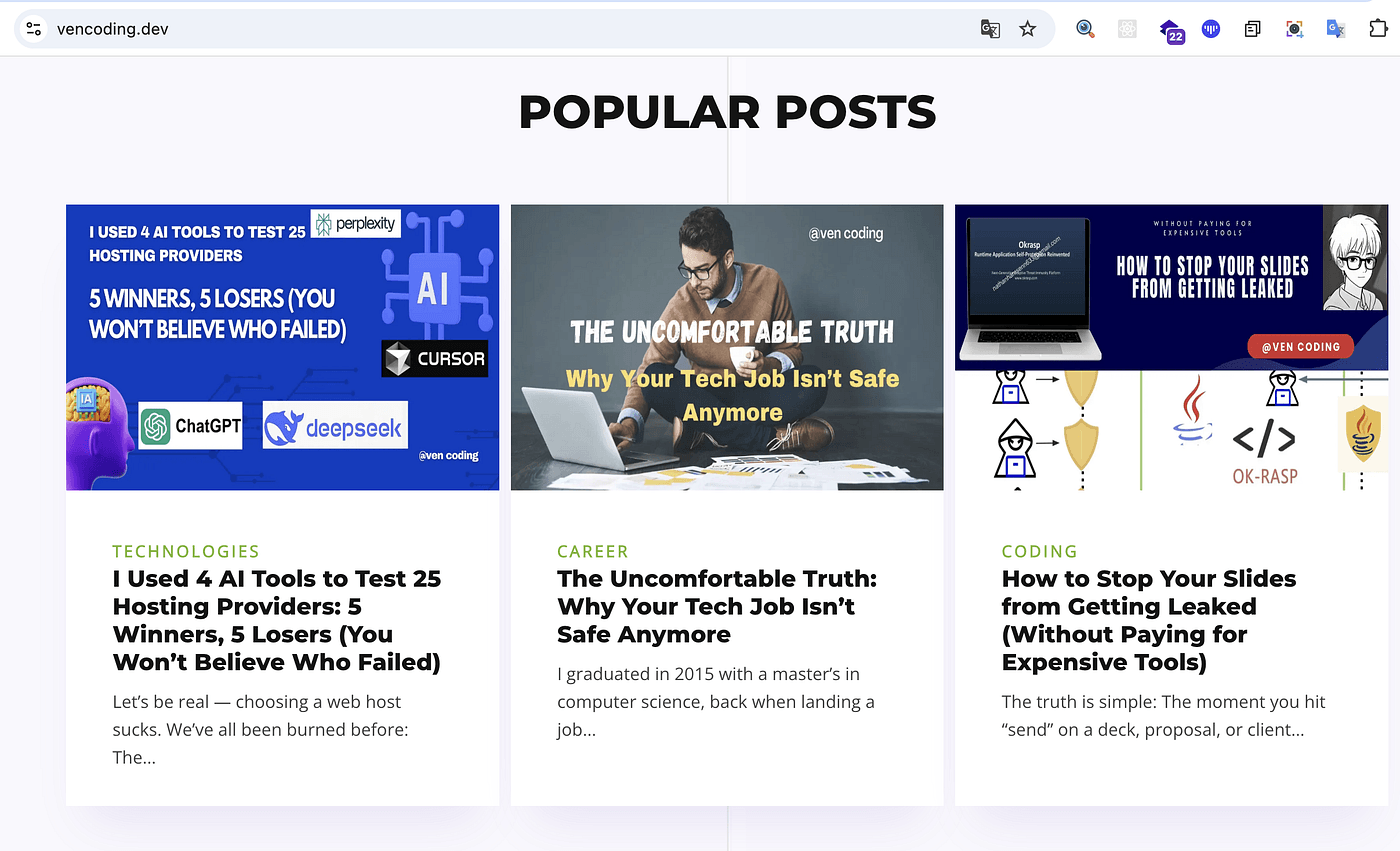 Next, I tried my personal blog — the place where I write about AI, indie development, and side-hustle stories.