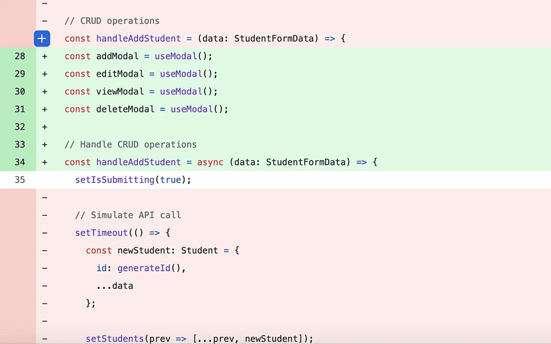Let’s compare before vs. after using GitHub’s commit diff view: