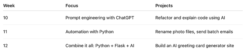 Phase 4 (Week 10–12): Use AI + Build Smarter Projects