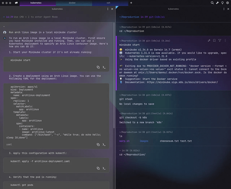 But it’s not just about speed. Warp is designed to be beautiful and user-friendly. It comes with built-in AI commands and a visual interface that makes navigating terminal sessions easier than ever. You can scroll, search, copy, and even share terminal output with teammates — all with a few clicks.
