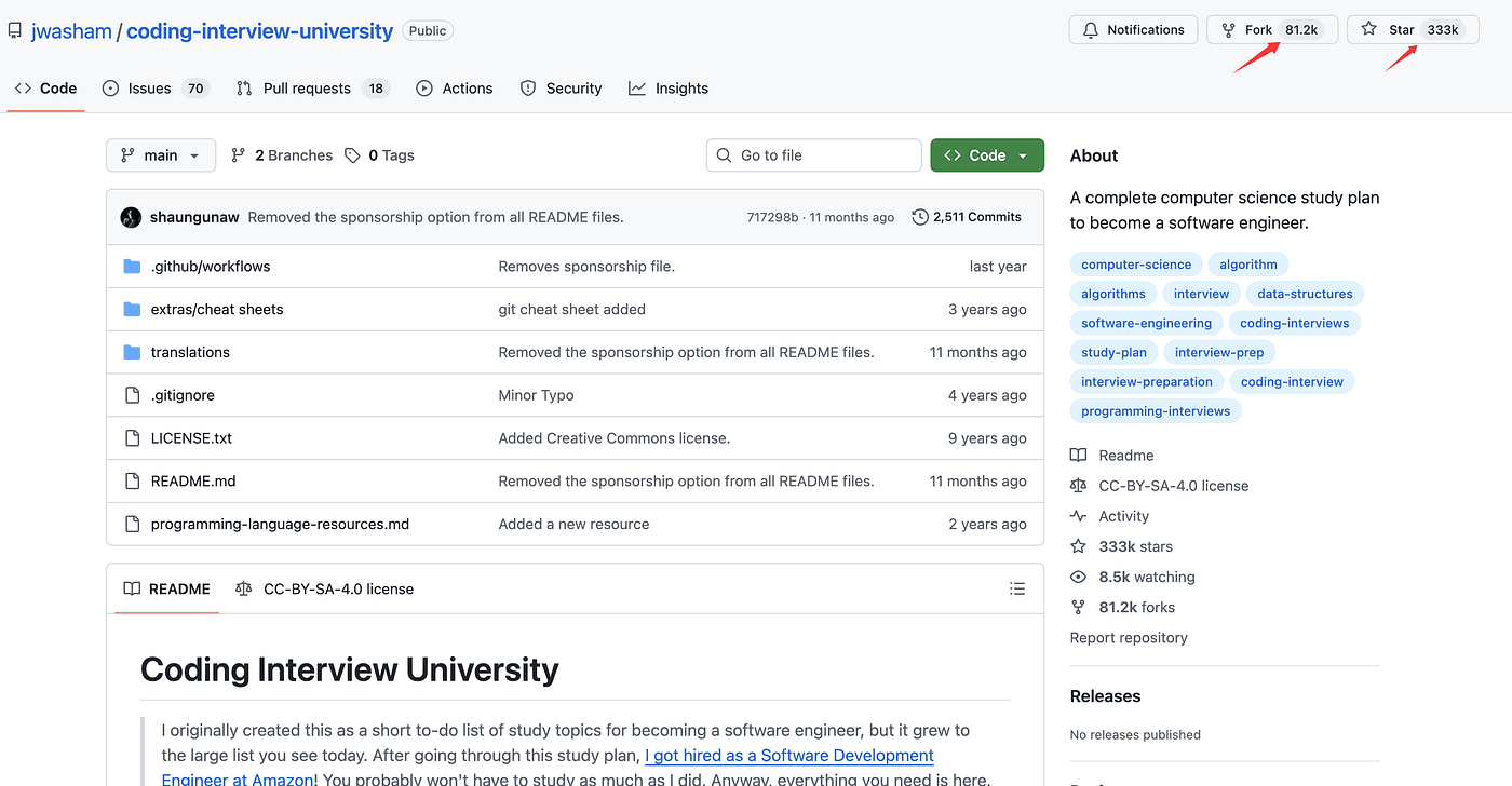 https://github.com/jwasham/coding-interview-university